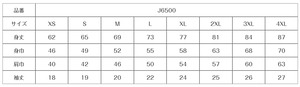 XXLサイズ:身丈810mm/身幅630mm/肩幅570mm/袖丈250mm