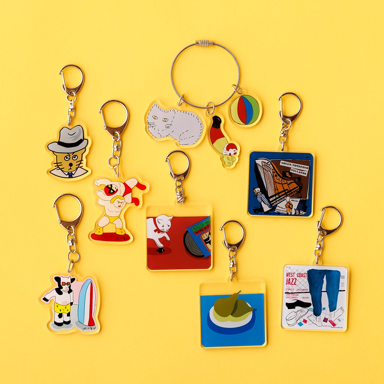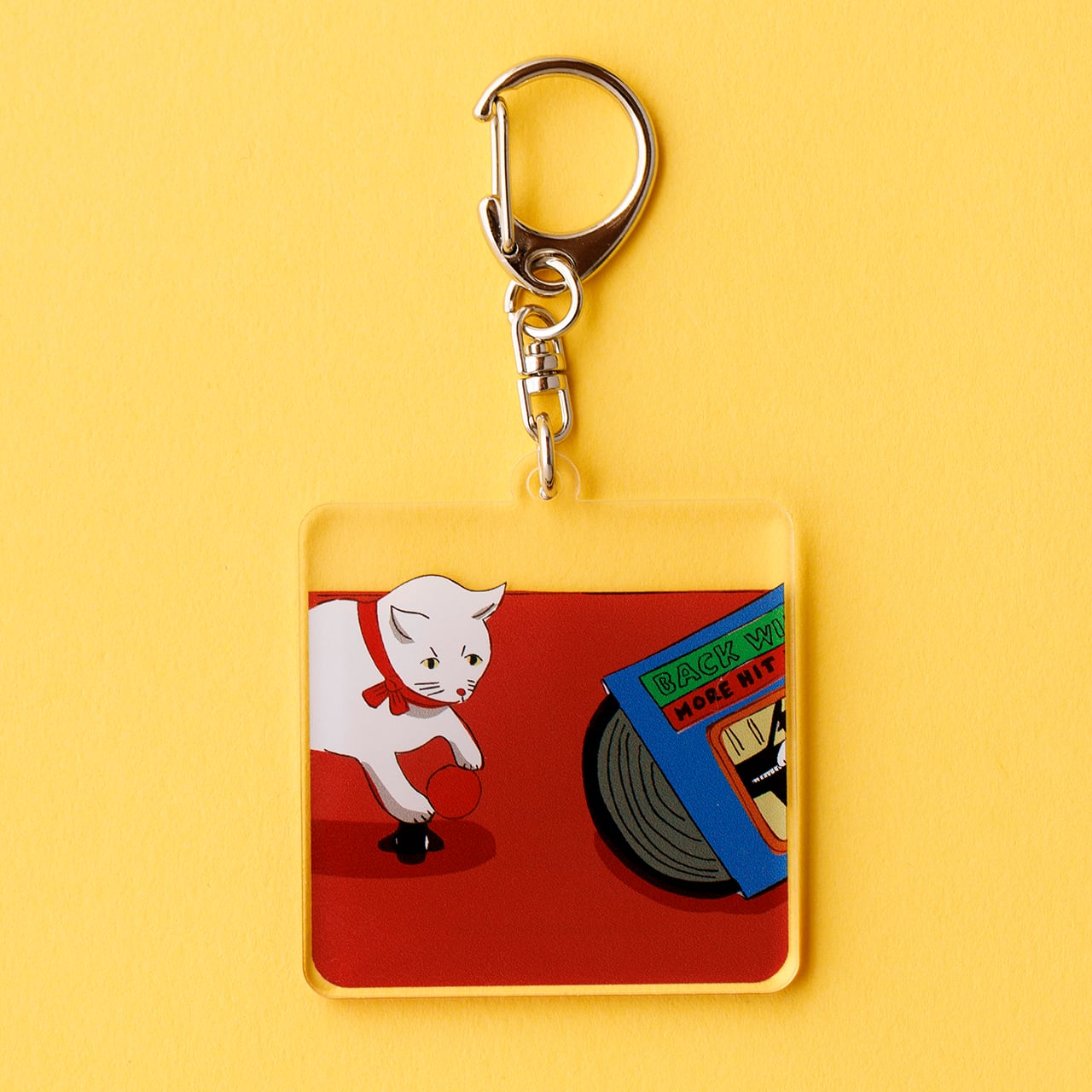 安西水丸 アクリルキーホルダー 猫とレコード